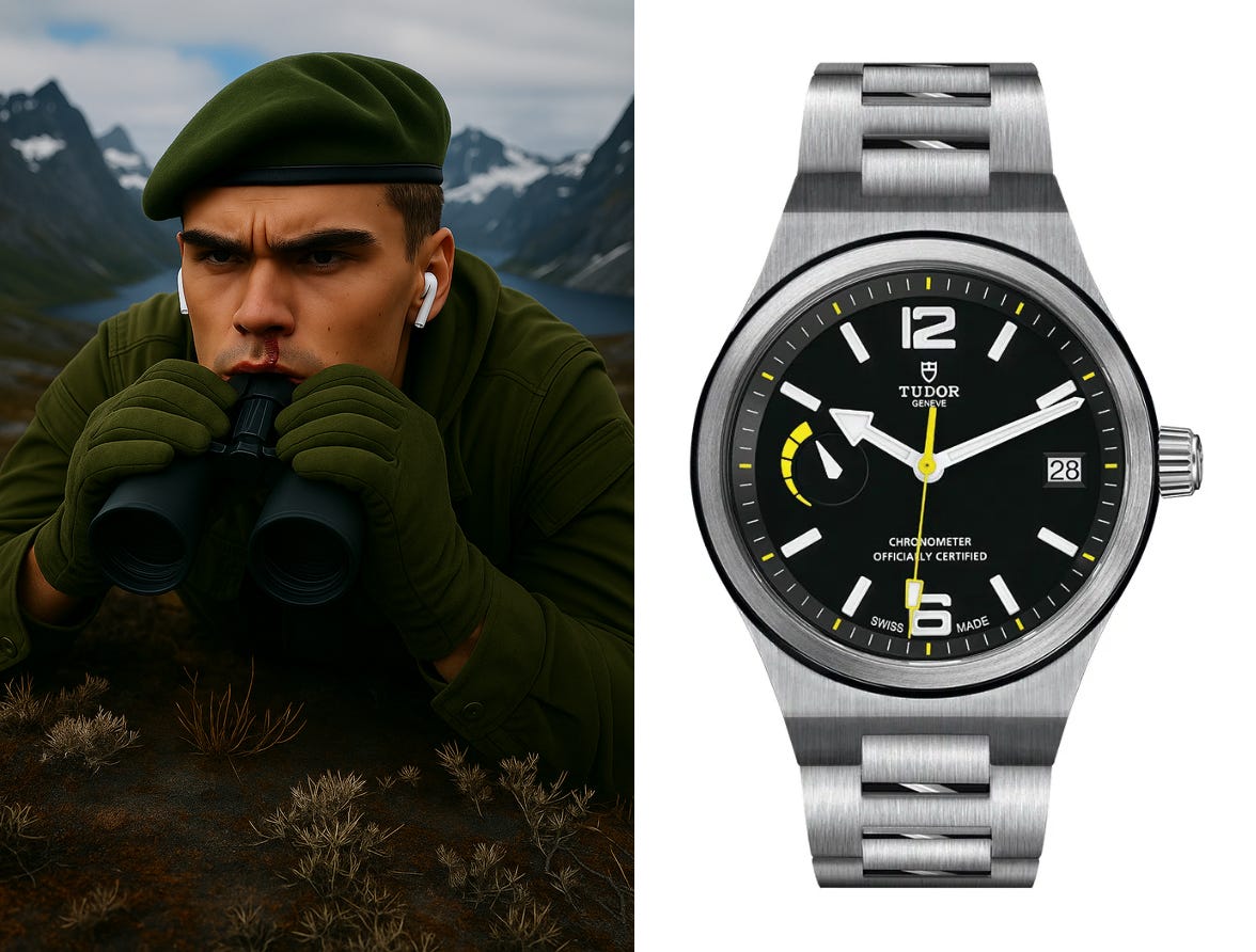 You glance away from your binoculars to check your Tudor North Flag for the third time this minute. The titanium timepiece was presented to you in an elaborate ceremony yesterday night by the company commander.